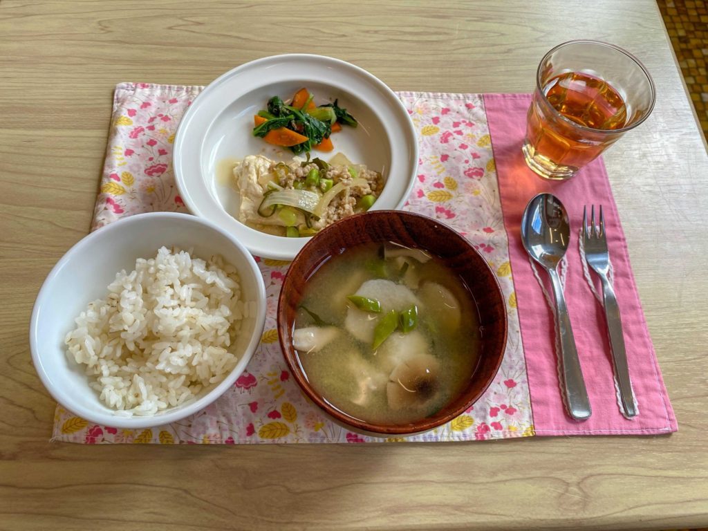 ○みそ汁…昆布・イリコ・椎茸出汁/ナス、玉ネギ