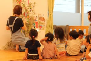 2020年7月の記事 みっけ! 2020.07.11 ハピネス日記 雨だと構えていましたが午前中は晴れたので、ゆったりのんびりのお散歩に行けました。 この前セミの羽化が見れたところでまたセ..... 続きを読む リトミック 2020.07.10 ハピネス日記 志免ビレッジ AさんBさんに分かれ、先に行う高月齢のAさんたちは、次の動きを前奏で聴き分けて準備できるようになりました。 一つ一つの動..... 続きを読む 子ども同士のコミュニケーション 2020.07.08 ハピネス日記 志免ビレッジ 雨上がり、今日は蒸し蒸しとしていましたね。 沐浴が始まり、2・3人ずつ順番で沐浴室に入ってきます。「頭、首、お腹、お尻、..... 続きを読む 七夕 2020.07.07 ハピネス日記 志免ビレッジ 熊本が地元で大雨の被害でご心配をおかけしました。地元天草牛深ですが、降水量で480ミリを突破し観測史上初という更新するほ..... 続きを読む 1